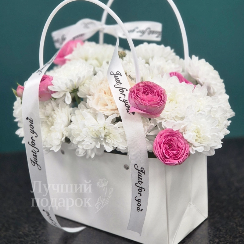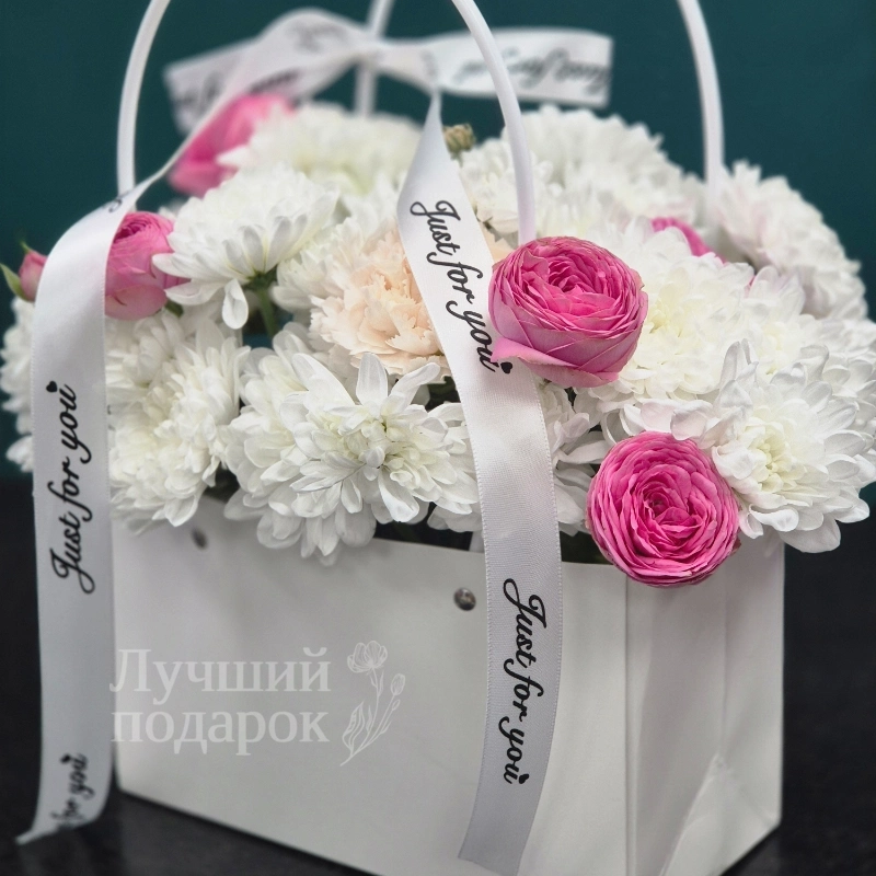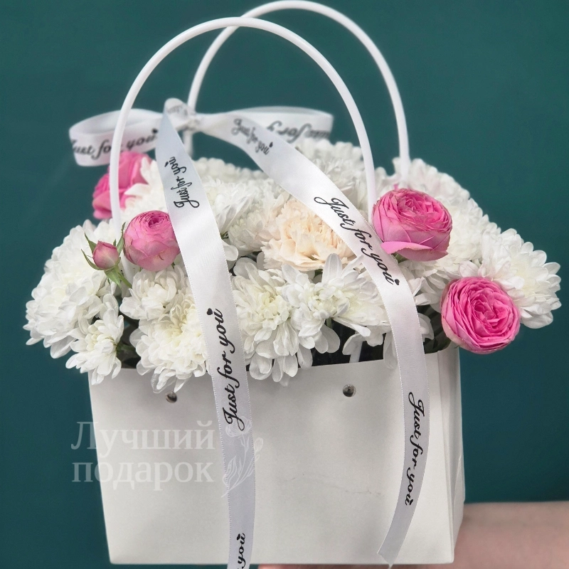 Откройте для себя уникальную композицию в сумочке «Шанс», которая подчеркнет вашу индивидуальность и стиль. В этой изящной и элегантной сумочке расположен букет из красивых кустовых пионовидных роз, создающих атмосферу нежности и романтики. В сочетании с яркими цветами диантуса и оригинальными хризантемами, композиция приобретает яркую выразительность и гармонию. Такой букет станет отличным подарком для близкого человека или стильным аксессуаром для особого случая. Композиция в сумочке «Шанс» выполнена из свежих и долговечных цветов, что гарантирует ее красоту на длительное время. Мягкие оттенки и аккуратная упаковка делают этот подарок по-настоящему восхитительным. Идеально подходит для того, чтобы подчеркнуть ваш вкус и подчеркнуть важное событие. Используйте этот букет для создания уютной атмосферы или как выразительный комплимент. Надежный и красивый, он обязательно произведет впечатление и запомнится навсегда.