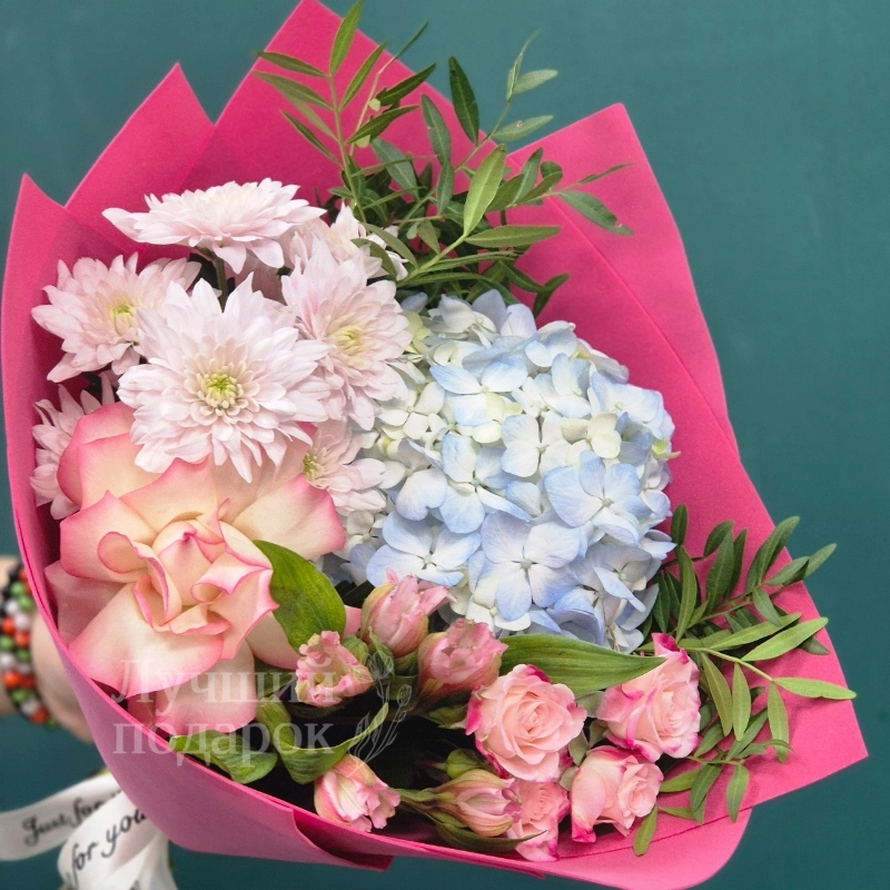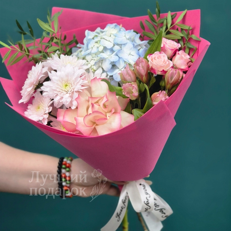 Букет «Голубок» — это изысканное сочетание нежных оттенков и элегантных цветов, прекрасно подчеркивающее особое настроение. В его составе — изящная пистация, романтичные розы, пышная гортензия, ароматные кустовые розы и изысканные альстромерии. Такой букет станет отличным подарком на любой праздник или особое событие. Каждая цветочная композиция создана с любовью и вниманием к деталям, чтобы радовать глаз и дарить настроение. Идеальный выбор для тех, кто ценит красоту и гармонию в мелочах. Букет «Голубок» украсит любой интерьер и подчеркнет вашу искреннюю заботу. Сделайте подарок незабываемым — выберите букет «Голубок» и подарите радость близким и друзьям.