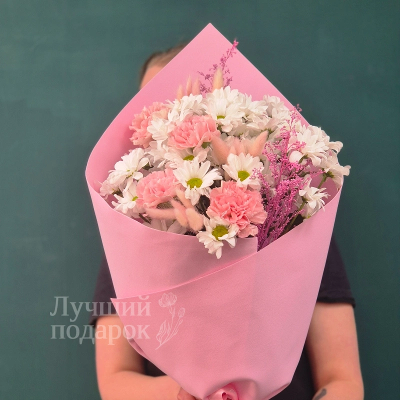 Букет «Ваниль» — элегантное сочетание лагуруса, солидаги, кустовой хризантемы и диантуса, создающее уютную и романтичную атмосферу. Его мягкая палитра и нежная структура идеально подчеркивают красоту любого интерьера. Этот букет станет прекрасным подарком для тех, кто ценит спокойствие и утонченную эстетику.