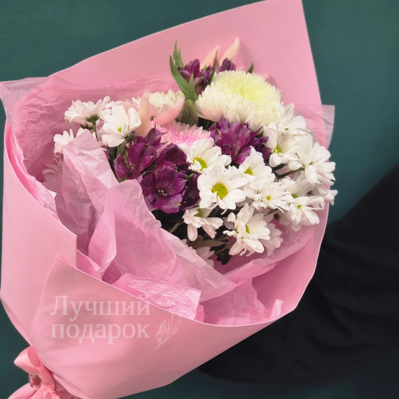 Букет «Свет звезды» — это изысканное сочетание природной красоты и элегантности. В его состав входят сухоцветы, создающие долгосрочное и устойчивое украшение. Кустовые хризантемы и одиночные цветы добавляют объем и насыщенность композиции. Альстромерия придает букету легкость и нежность, подчёркивая его воздушность. Такой букет идеально подойдет для праздничных мероприятий и дарит ощущение тепла и уюта. Он станет прекрасным подарком для тех, кто ценит утонченность и природную гармонию. Букет «Свет звезды» отлично впишется в любой интерьер, создавая атмосферу сказочного света.