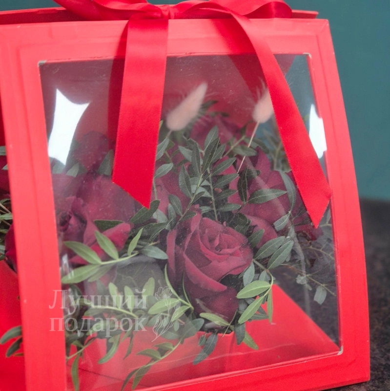 Презентабельная композиция в изящной коробке с экраном — утончённый способ выразить симпатию или благодарность. Идеальный подарок, который дополнит стиль получательницы.